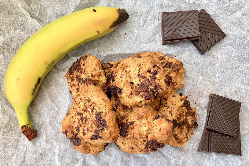 Banancookies med chokolade og nødder smager så godt, at alle kan være med. Og så er de tilmed hurtige at lave, når man bliver lækkersulten. Banancookies tager ikke lang tid at lave. Under en halv tim...