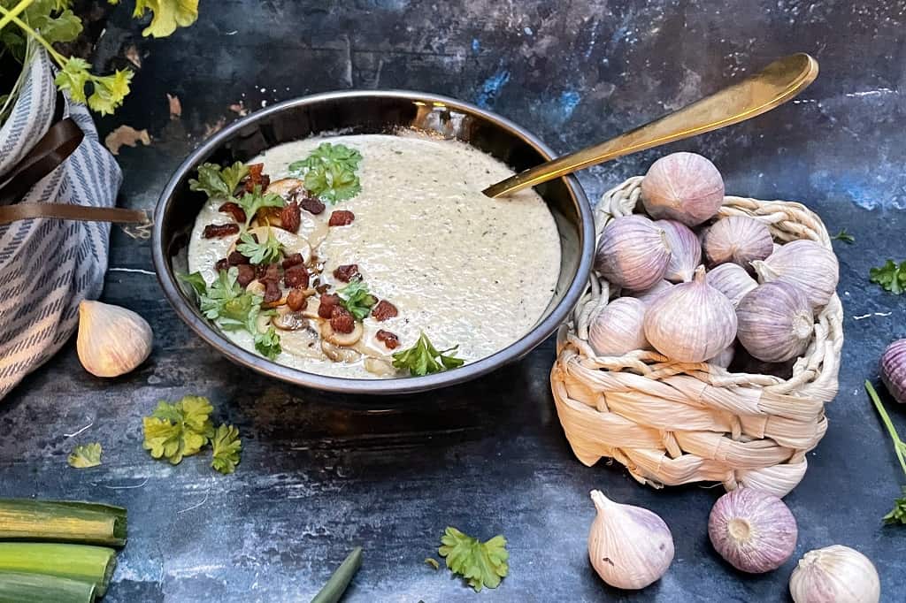 Cremet portobellosuppe er en virkelig lækker suppe med forårsløg, hvidløg og de gode portobellosvampe. Server med bacondrys og persille. Portobellosuppe er en skøn suppe, som har en rigtig god umami-s...